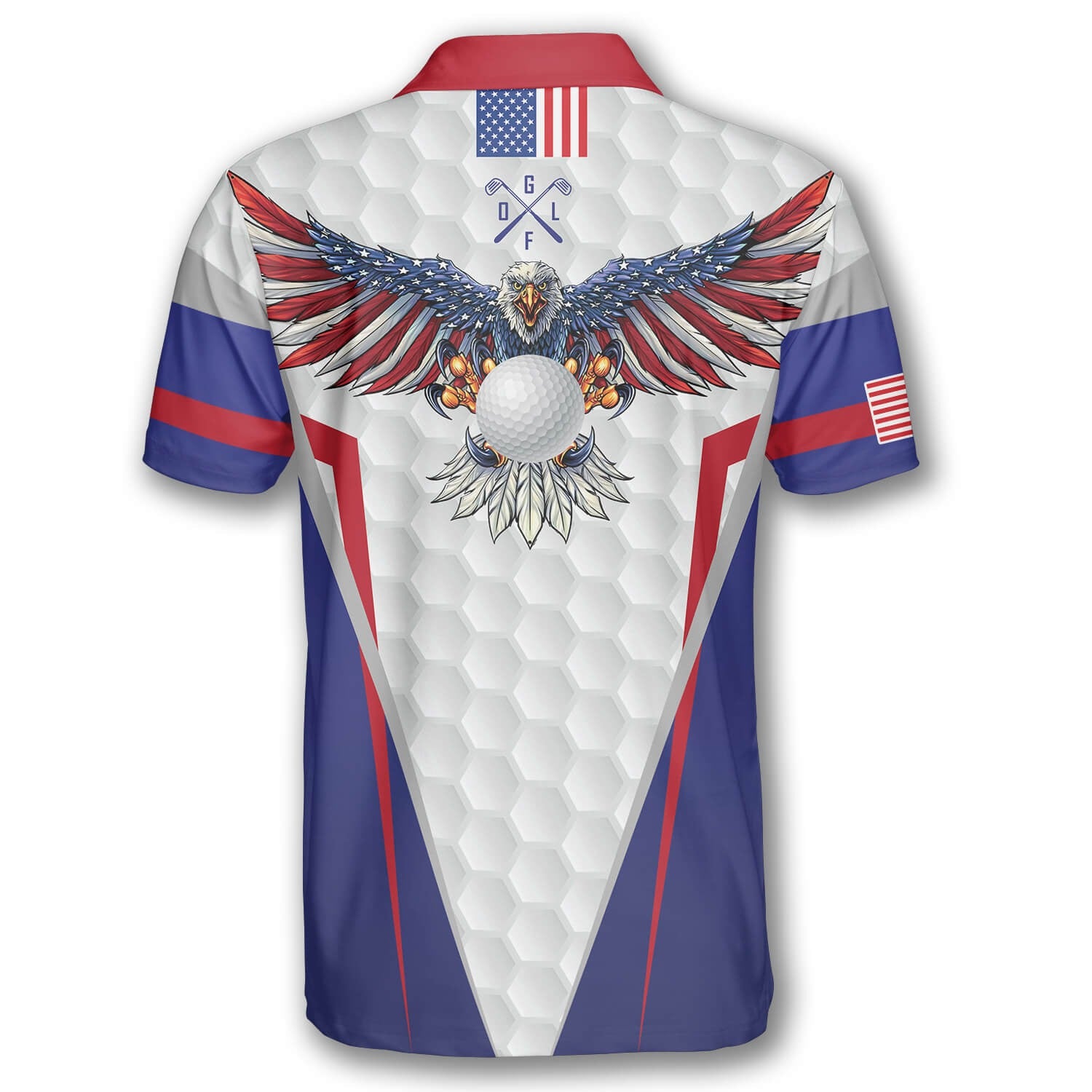 Patriotic American Flag Eagle Sports Style Custom Golf Polo Shirts for Men, Long Sleeve Golf Shirts, Golf Lovers Gift