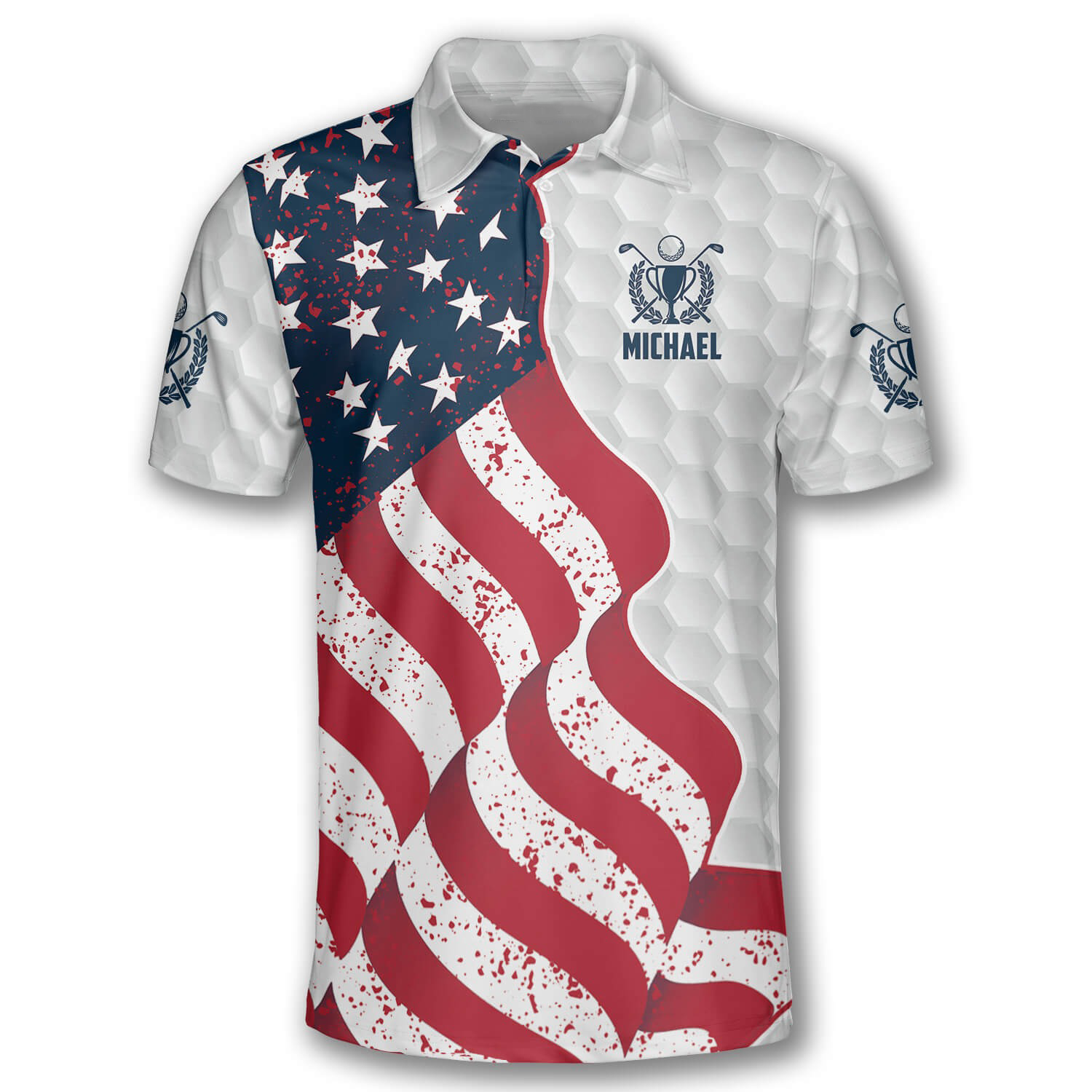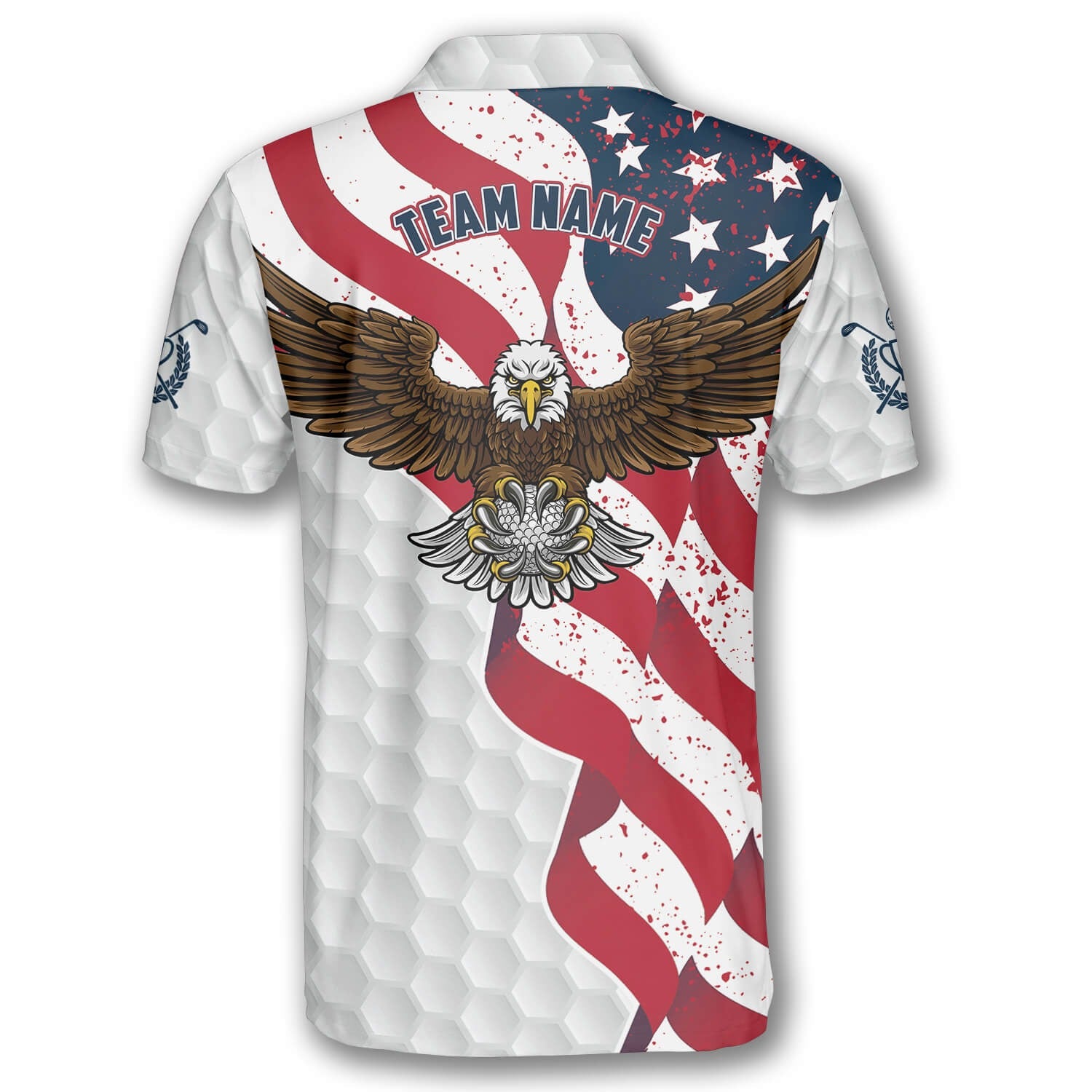 Patriotic Eagle Waving Flag Trophy Emblem Custom Golf Polo Shirts for Men, Long Sleeve Golf Shirts, Golf Lovers Gift