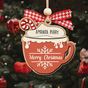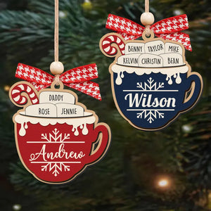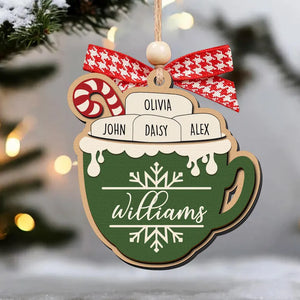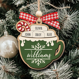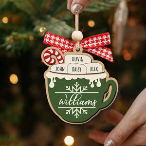 Personalizable Ornament With Family Names Hot Cocoa Christmas Wood Ornament, Family Gift Ideas For Christmas