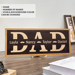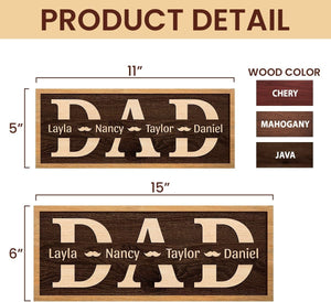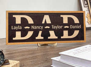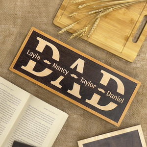 Personalized Dad Frame Wood Sign With Kids Name, Wooden Table For Home Decor