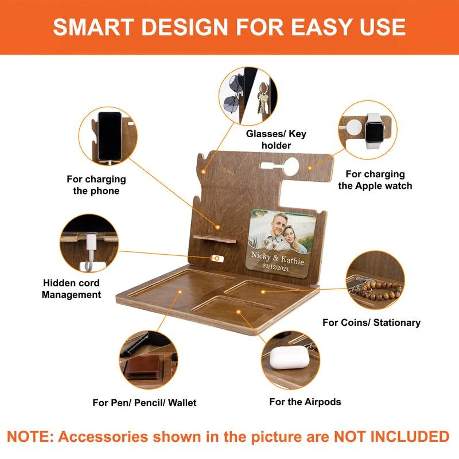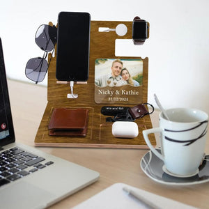 Wood Docking Station, Docking Station With Acrylic Photo, Home Decor, Father's Day Gift for Dad, Husband or Him