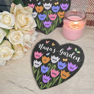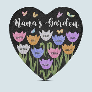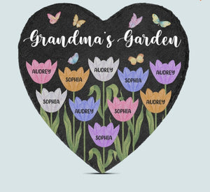 Personalized Garden Stone With Grandkids Name, Custom Name Heart Shaped Flower Plaque, Mother's Day Gift, Gift For Her, Garden Decor