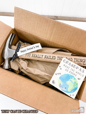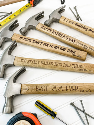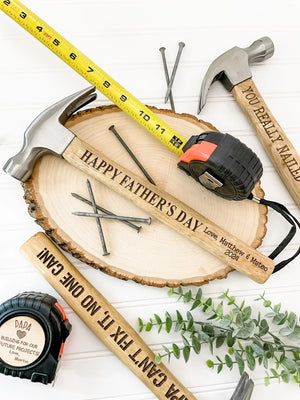 This personalized hammer and tape measure set makes a wonderful Father's Day, birthday, especially for those hardworking dads and grandpas out there! Engraved with the phrases "When it comes to being the best dad (or grandpa), you nailed it!" and "You are loved beyond measure", these personalized tools will bring a smile to his face every time he uses them.