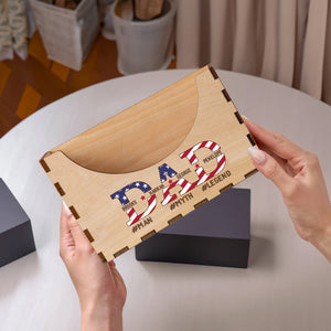 ⭐️ Customize it with titles like Dad, Daddy, Papa, Grandpa, and more, and add up to eight names. The patriotic stars and stripes design adds a unique touch, making it an ideal gift for Father's Day, birthdays, or any special occasion.