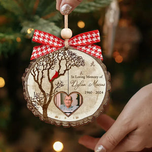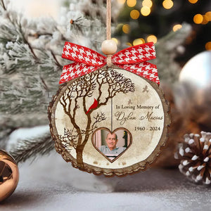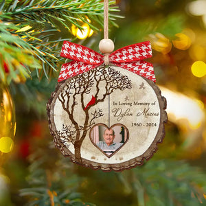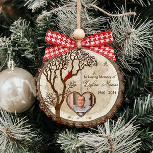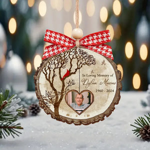 Cherish the memory of a loved one with our beautifully crafted wood ornament. This heartfelt piece serves as a touching tribute, perfect for hanging on your Christmas tree or displaying year-round. Featuring a lovely cardinal design, it symbolizes the presence of those we hold dear in our hearts.