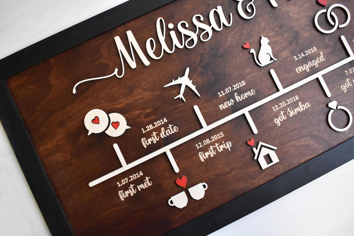 Love Story Timeline 2 Layered Frame Wood Sign, Custom Anniversary Gifts, Couple Valentine Gifts