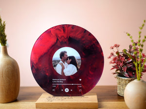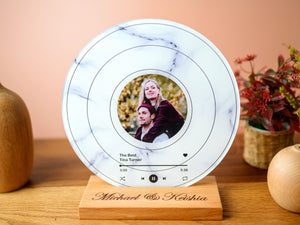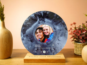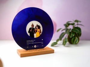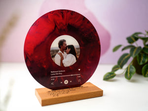 Personalized Photo Vinyl Record With Wood Base, First Dance Song, Anniversary Gift For Couple