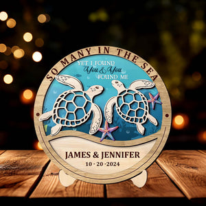Personalized Sea Turtles 2 Layered Wood Sign, Couple Wood Sign, Valentine's Day Gift