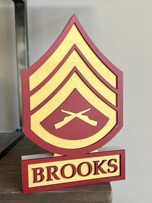 Personalized USMC Rank Self Standing Name Plate, Veteran Day Gifts