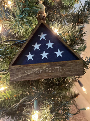 - Engraved Military Design: Featuring a symbolic folded flag, military emblem, or other personalized design, this ornament honors the veteran’s service. The engraved details are carefully etched into the wood, creating a lasting and elegant tribute.