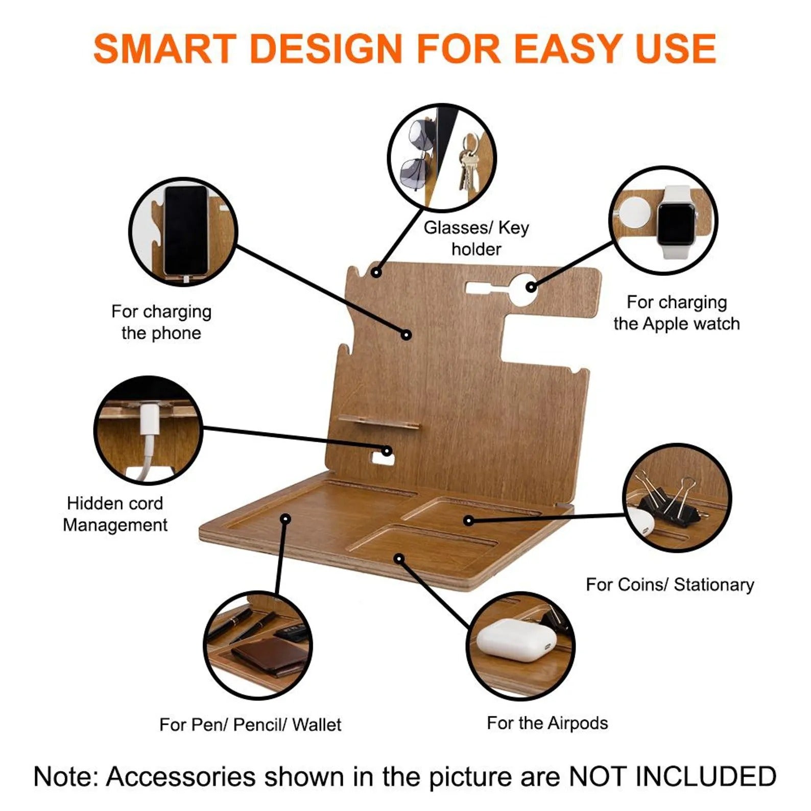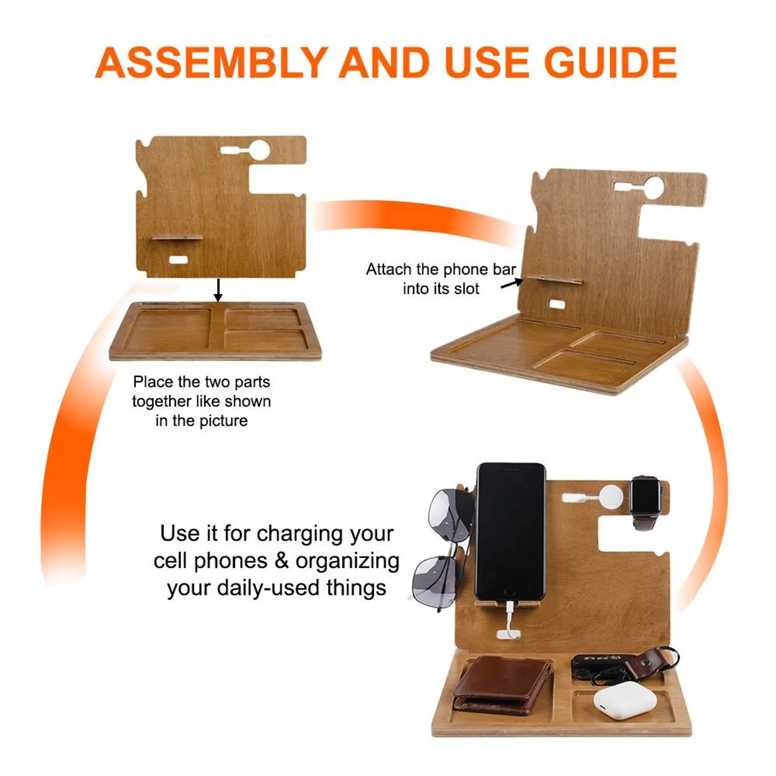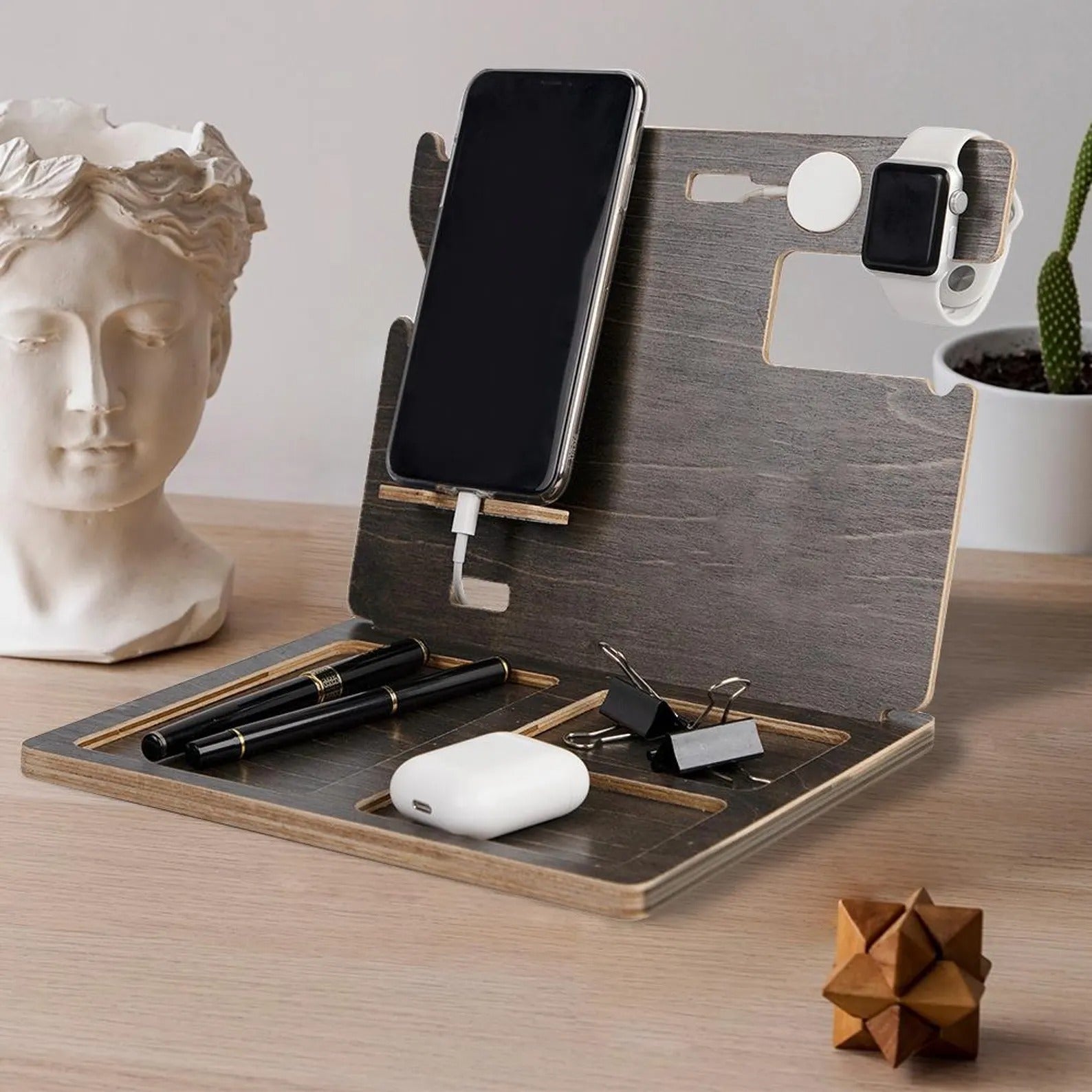 Wood Docking Station, Desk Organizer, Father's Day Gift for Dad, Husband or Him