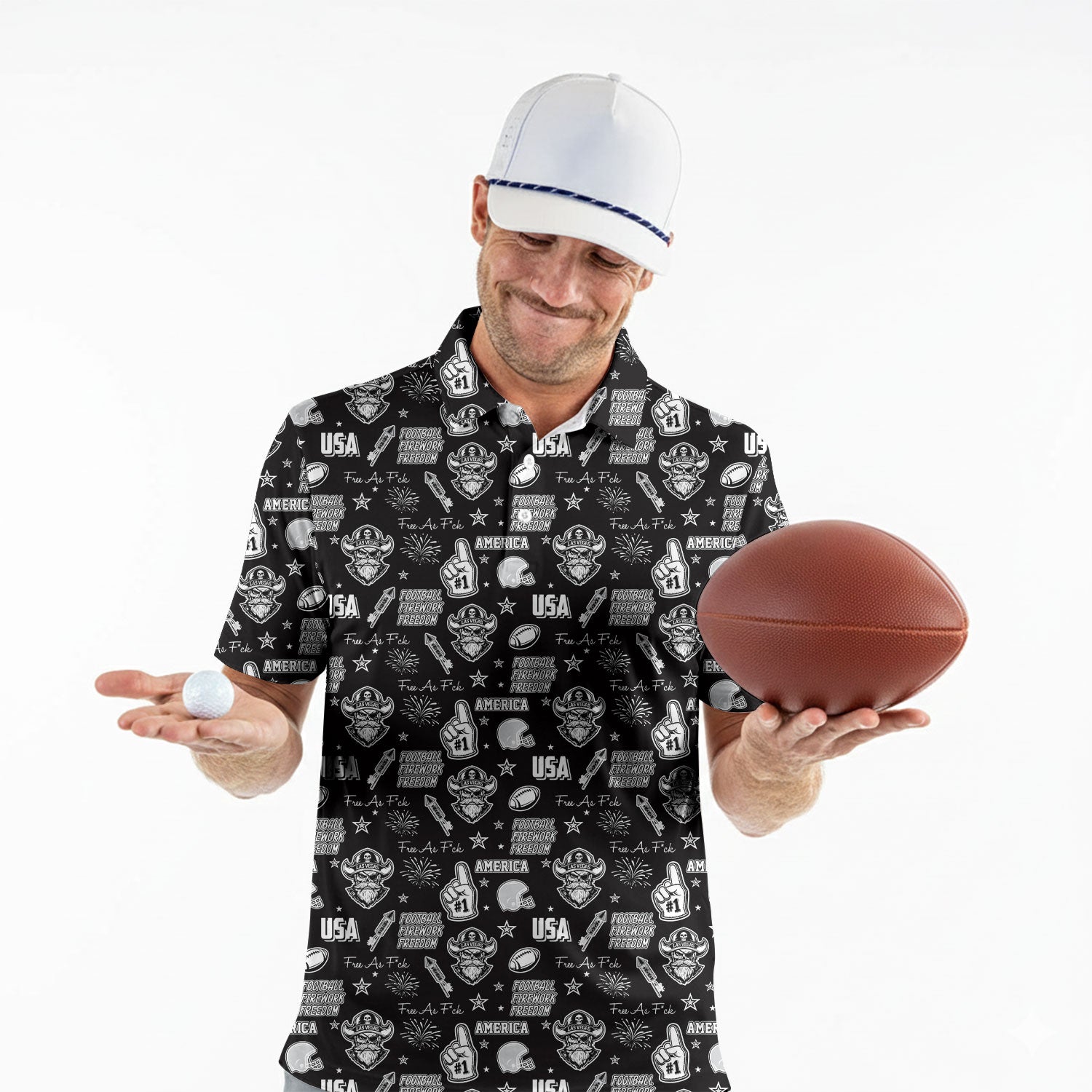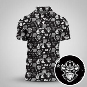 Pirate Black Silver White Sport Polo, American Football League Gift Ideas For Football Fans