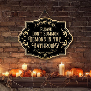 Please Don't Summon Demons In The Bathroom Witch Halloween Wood Sign, Halloween Decor