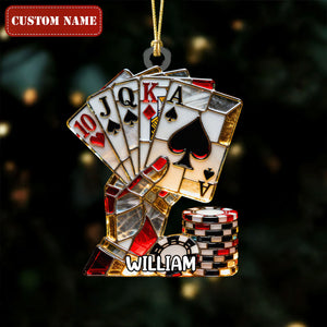 Poker Player Stained Glass Crystal Effect Acrylic Ornament, Poker Elements Unique Christmas Ornament