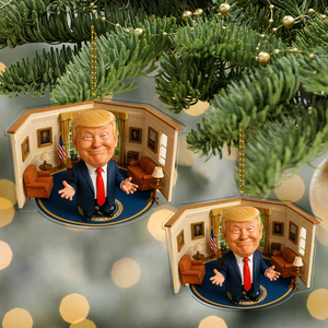 President Trump Oval Office 2D Acrylic Ornament, Patriotic Ornament, Funny Keychain, Funny Christmas Ornament