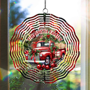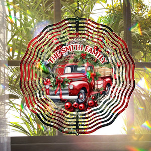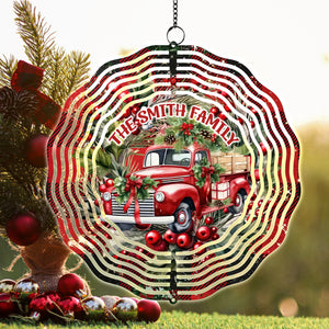 Red Truck With Christmas Tree Custom Double Sided Metal Wind Spinner, Family Gift