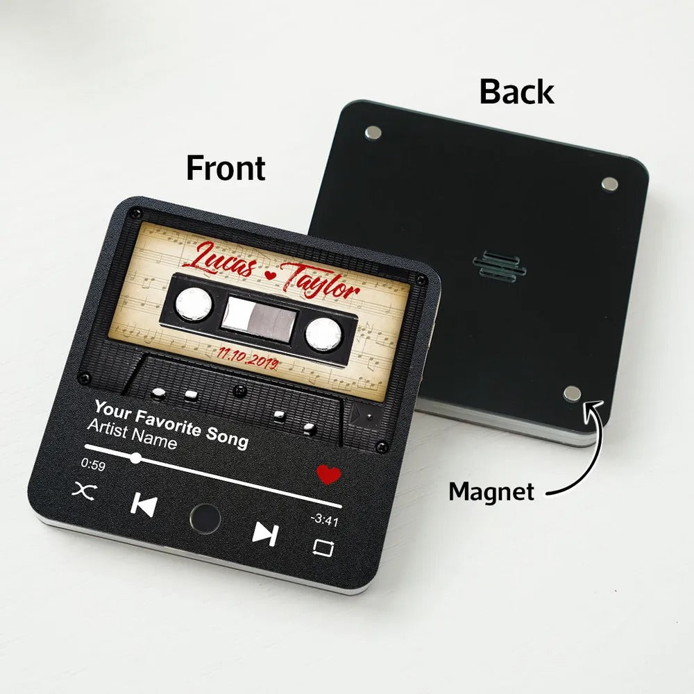 Retro Black Cassette Tape Custom Music Fridge Magnet, Valentine's Day Gift