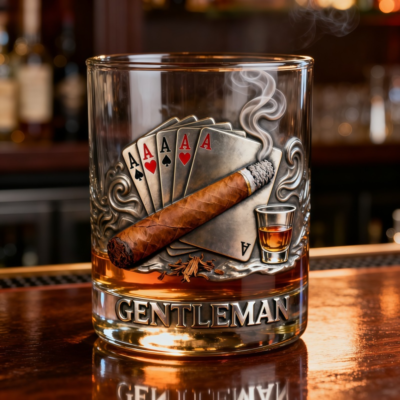 Smoke Lover Custom Whiskey Glasses, Vintage Man Custom Rocks Glasses, Whiskey Lover Gift