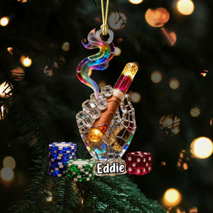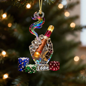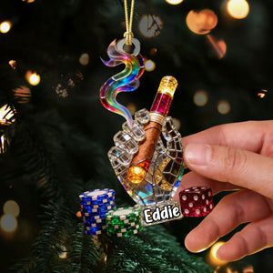 Smoking Casino Acrylic Ornament, Card Player Xmas Home Decor, Casino Lover Christmas Unique Gift