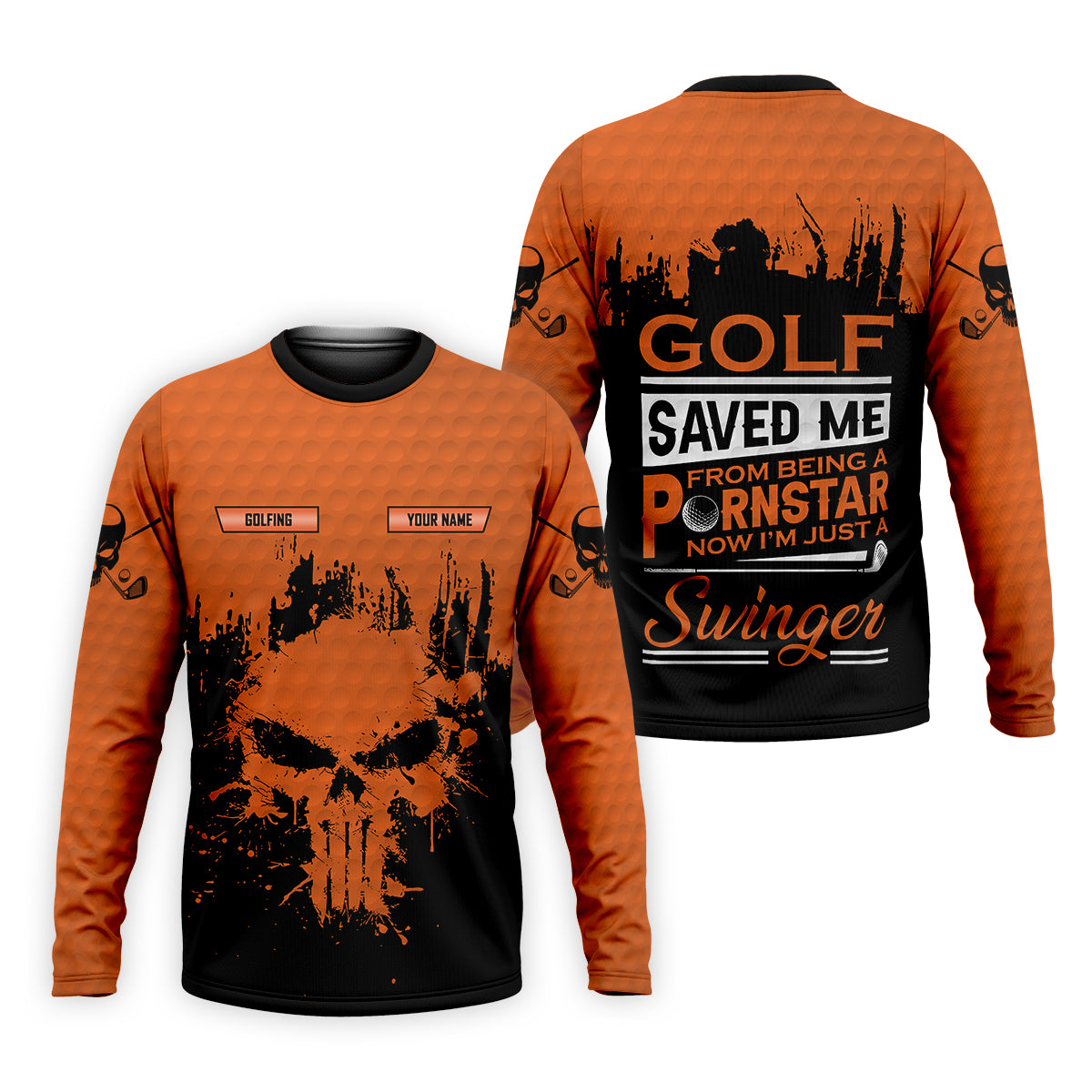 Golf Saved Me From Being A Porn Star Now I'm Just A Swinger Custom Skull Golf Polo Shirt, Dad Golf Gift