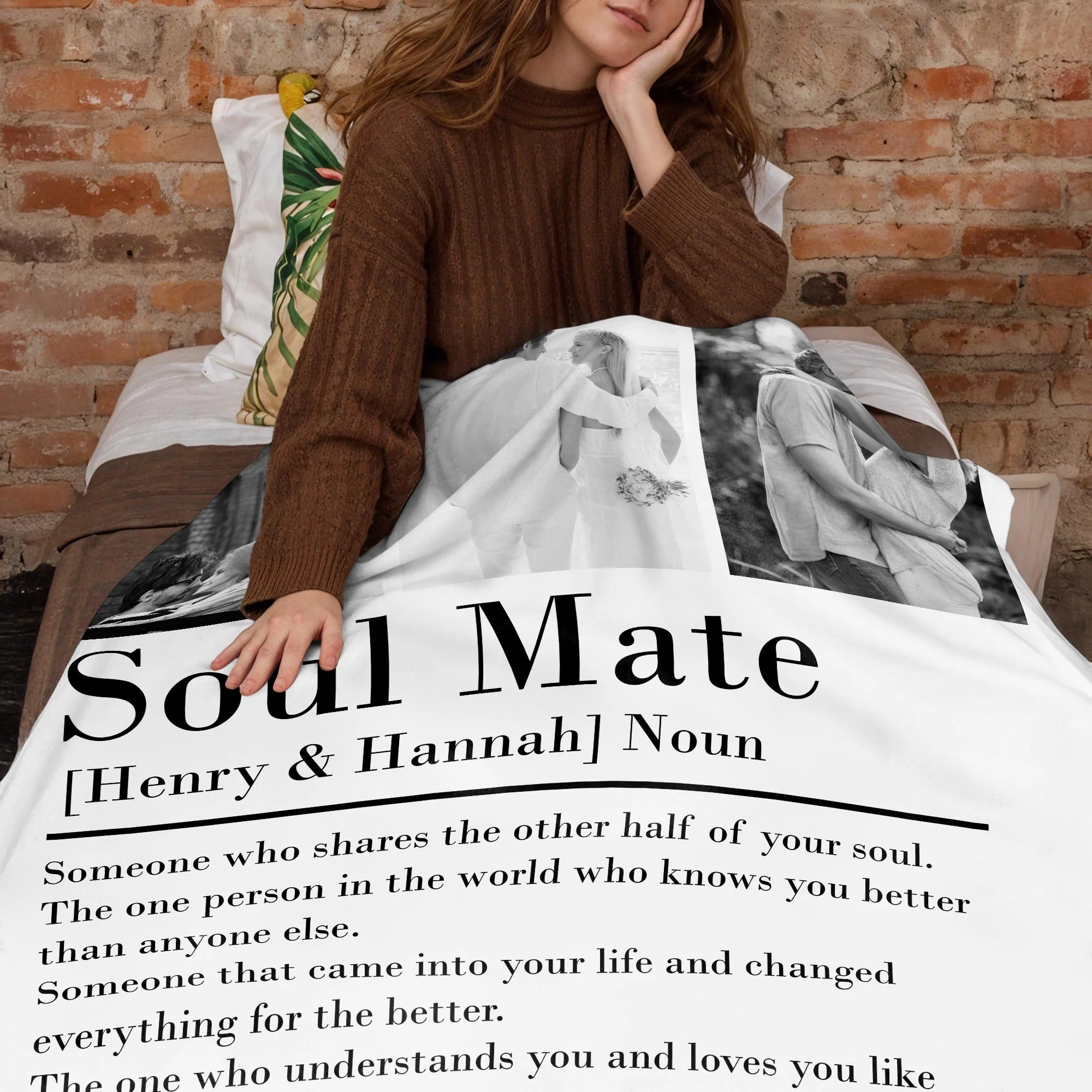 Soul Mate Definition Quilt Blanket, Personalized Custom Blanket, Valentines Couple Gift, Couple Anniversary Gift
