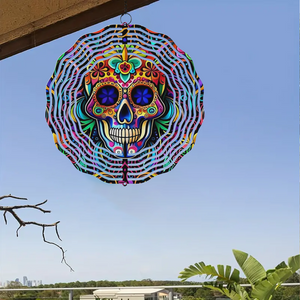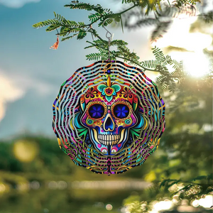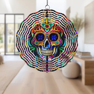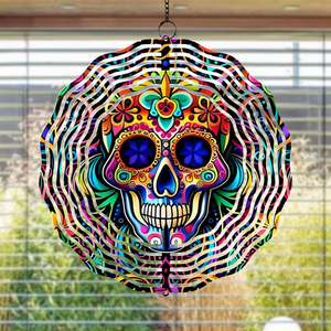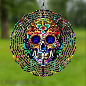 Sugar Skull 3D Double Sided Metal Wind Spinner, Gothic Gifts, Christmas Decor