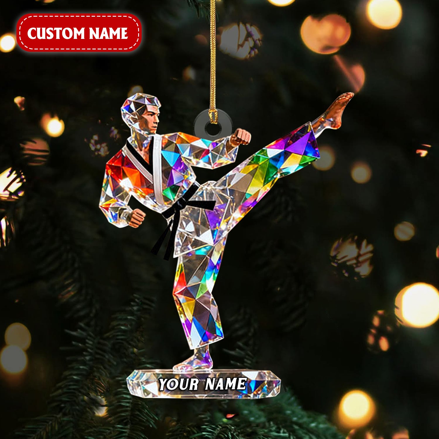 Taekwondo Pose Custom Name Stained Glass Effect Acrylic Ornament, Xmas Decor, Taekwondo Gift