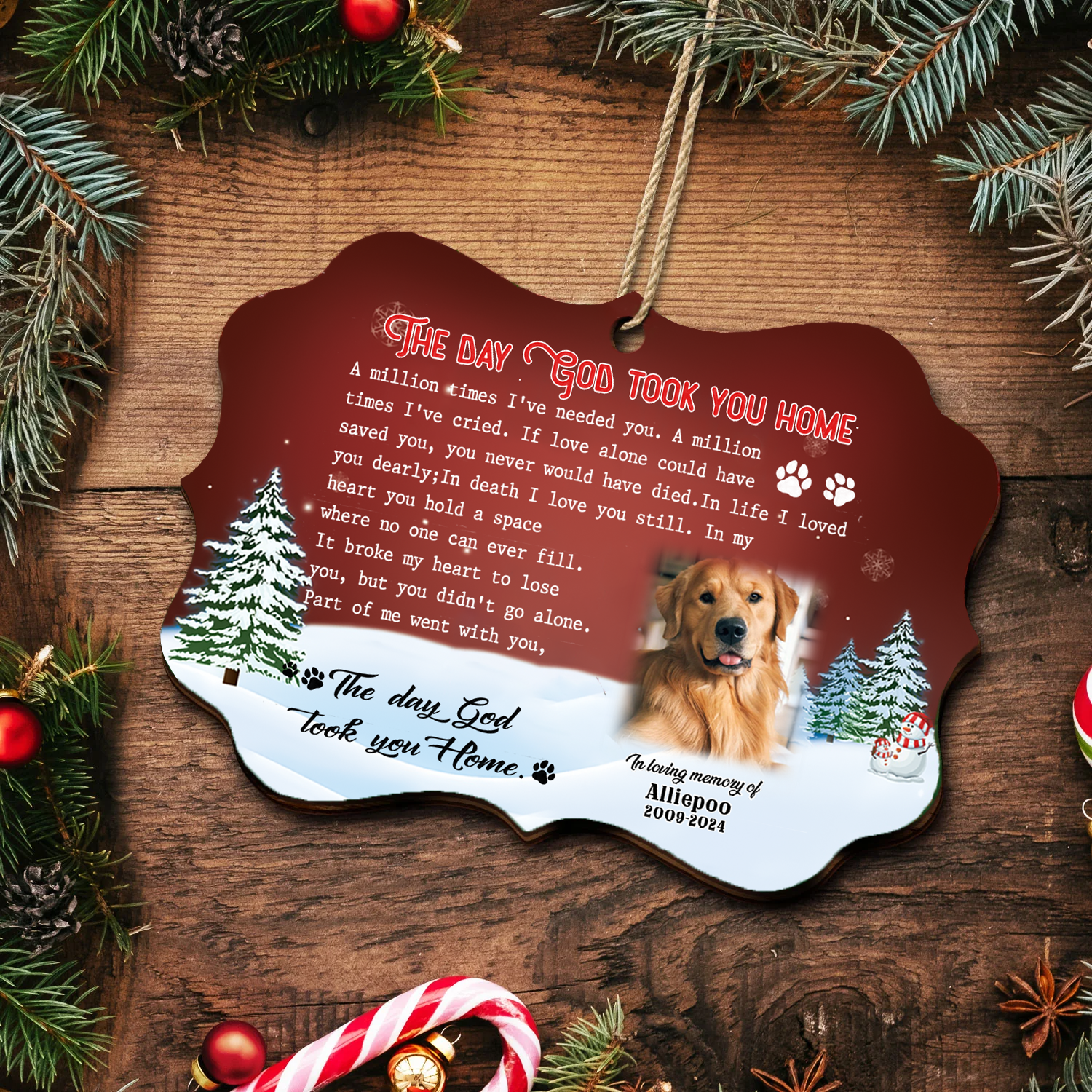 The Day God Took You Home Custom Photo Memorial Christmas Wood Ornament, Sympathy Gift For Loss Of Dog