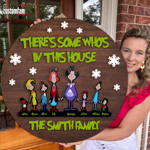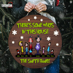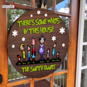There's Some Whos In This House Personalized 2 Layered Christmas Wood Door Sign, Christmas Decor