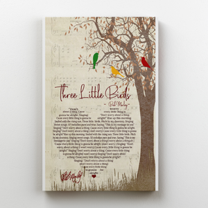 Three Little Birds Bob Marley Lyrics Print Canvas, Song Lyric Wall Art Print Canvas, Framed Canvas Prints