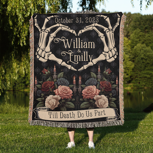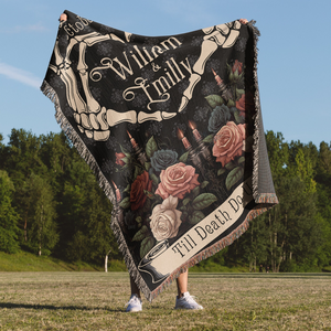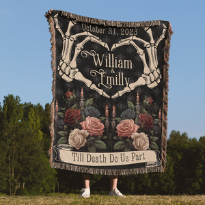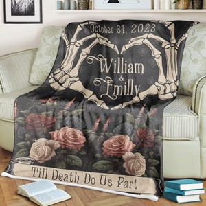 Till Death Do Us Part Custom Gothic Couple Skeleton Throw Blanket, Wedding Aniversary Gift
