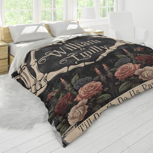 Celebrate everlasting love with our Till Death Do Us Part Custom Couple Skeleton Blanket. This unique and cozy blanket features a personalized design with a skeleton couple motif, making it a perfect gift for couples who embrace a playful and spooky aesthetic. Ideal for anniversaries, weddings, or just a special reminder of your love, this blanket is a memorable way to say, “forever and always.”