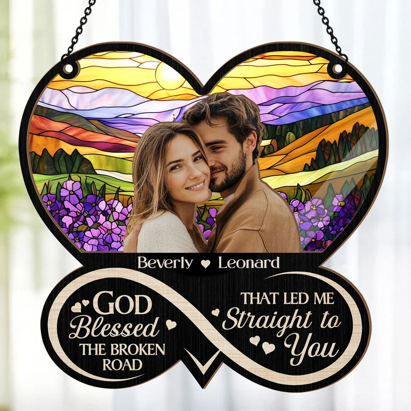 God Blessed The Broken Road That Led Me Straight To You Personalized Suncatcher Ornament, Personalized Christmas Ornaments