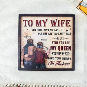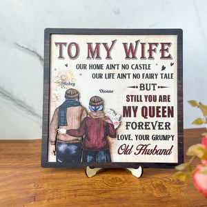 To My Wife Our Home Ain't No Castle 2-layered Wood Sign, Old Couple Gifts, Anniversary Gift For Couple