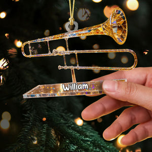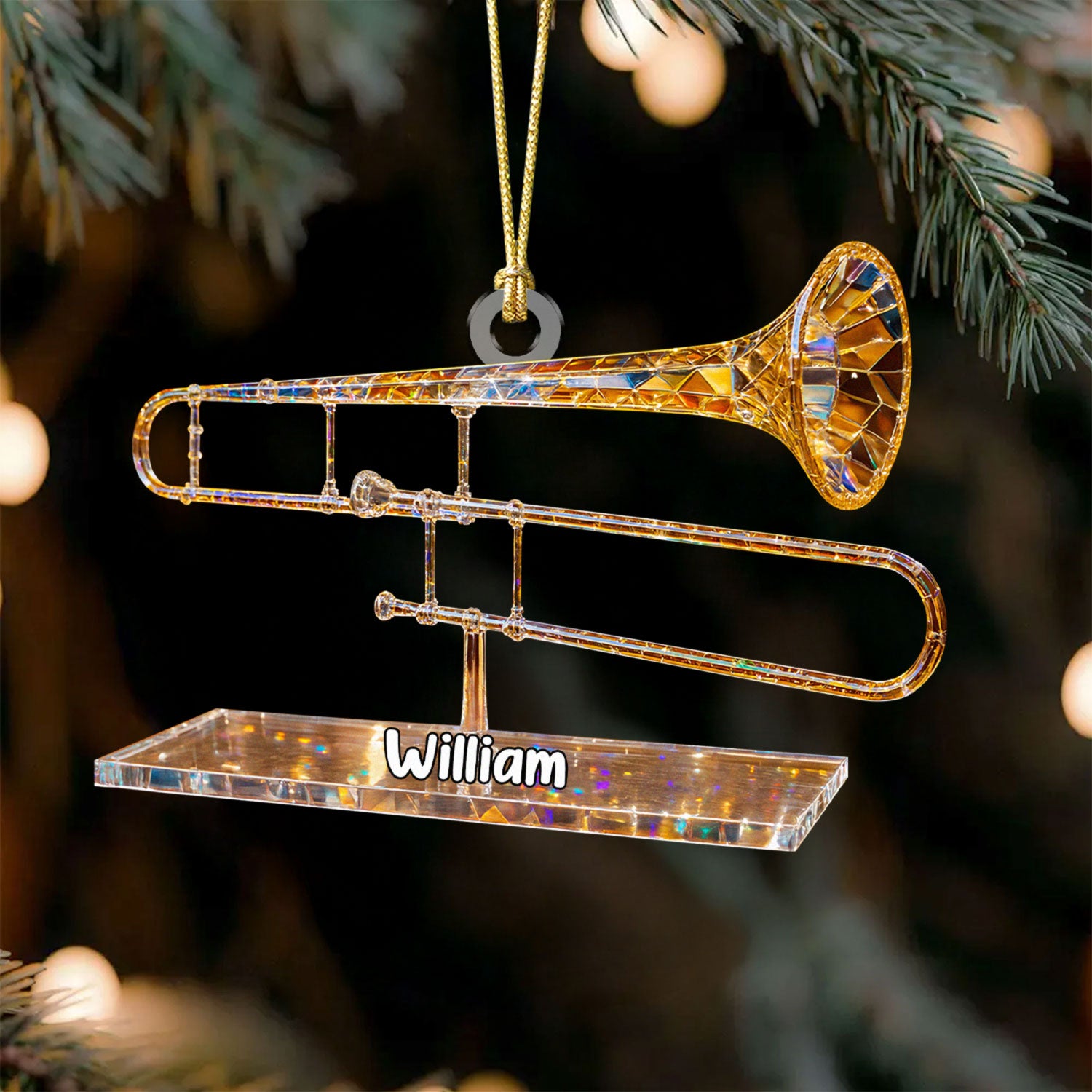 Trombone Custom Name Stained Glass Effect Acrylic Christmas Ornament, Music Ornament, Musician Gift