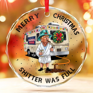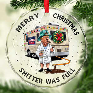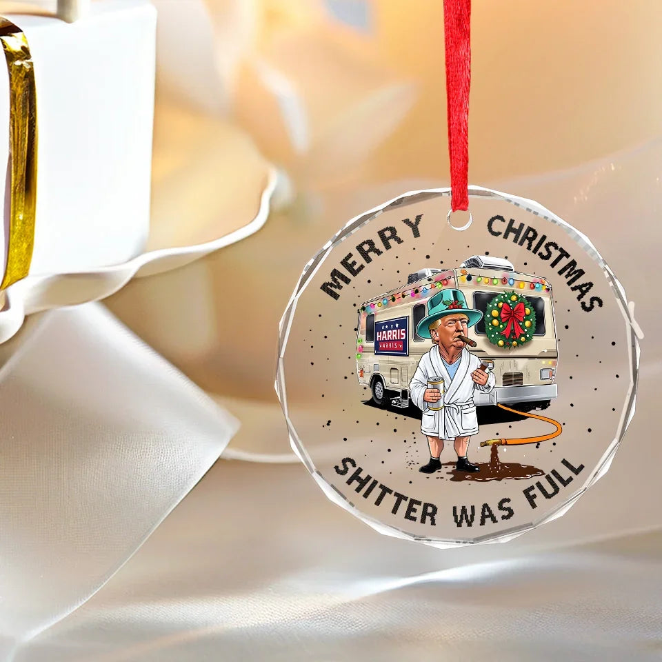 Trump2024 Cousin Eddie Costume Shitters Full Glass Ornament, Trump Funny Christmas Ornament