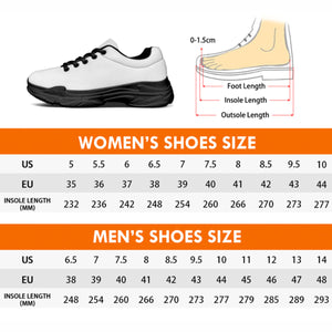- Sole: Thick, chunky sole for maximum comfort and trendiness, in a pure white or two-tone red/blue gradient.