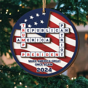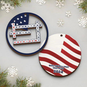 Trump2024 Make America Great Again Crossword Puzzle Ornaments, 2-Layer Wooden Ornament