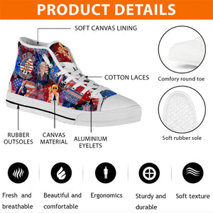 Step into the future with style and pride! Our Trump 2024 Unisex Canvas Shoes are the perfect blend of comfort, durability, and patriotic flair.
