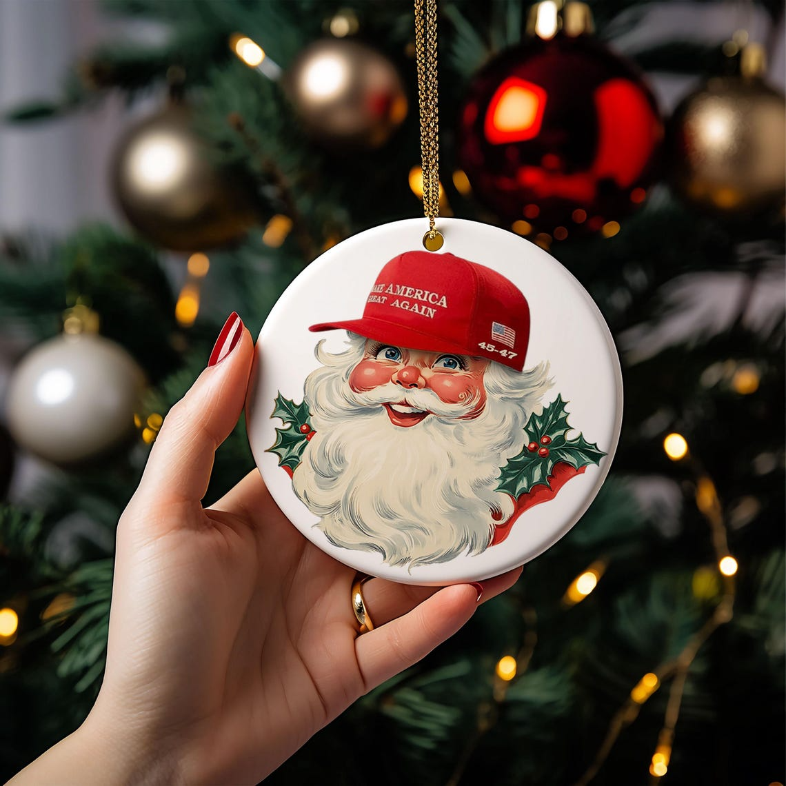 Trump2024 Vintage Santa Claus Ornament - Funny Christmas Ceramic Ornament