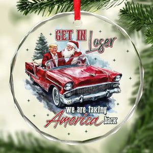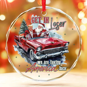 Trump2024 "Get In Loser, We Are Taking America Back" Full Glass Ornament - Funny Christmas Decoration