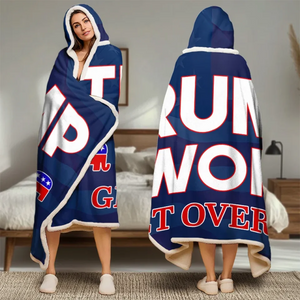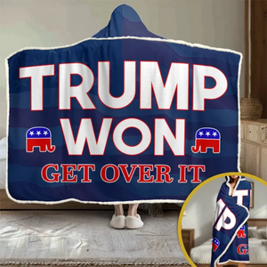 Trumpwon Get Over It Hoodie Blanket, 47th US President Snuggie Hoodie, Funny Political Gifts