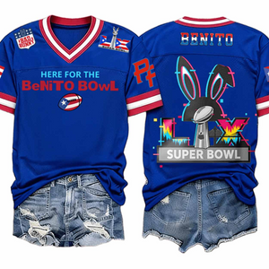 Unisex Here For The Benito Bowl LX Print T-Shirt, Bad Bunny LIX Benito Bowl Football Jersey, Football Tee