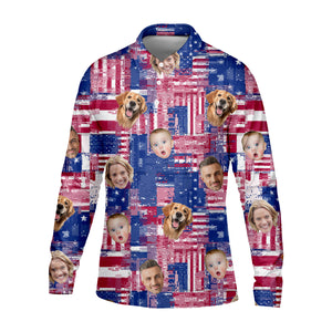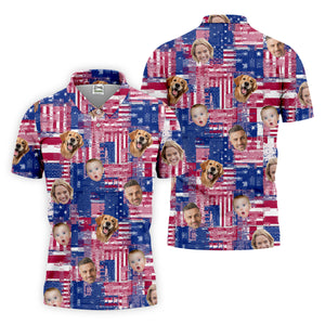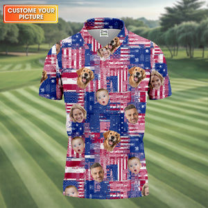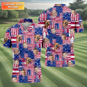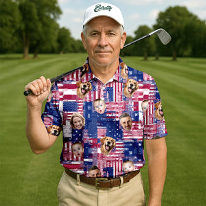 USA Flag Golf Shirts, Custom Face Shirt, Men's Golf Polo Shirt, Men's 4th Of July Shirts