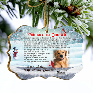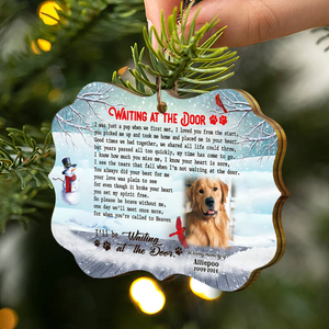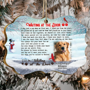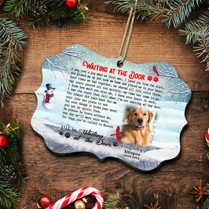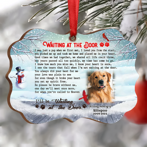 Waiting At The Door Custom Photo Memorial Christmas Wood Ornament, Gifts For Loss Of Dog