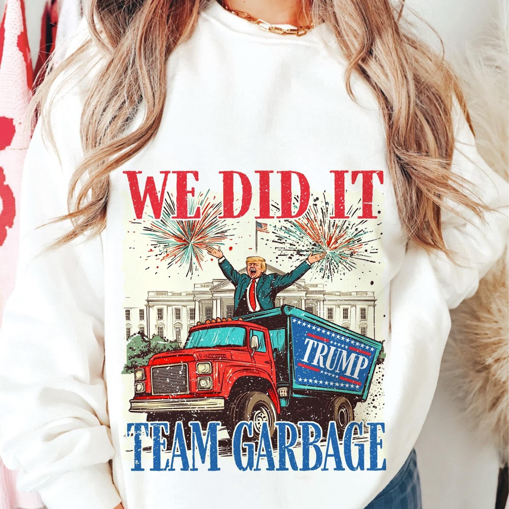 We Did It Team Garbage Trump2024 Funny Christmas Sweatshirt, Funny Political Shirts
