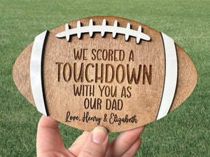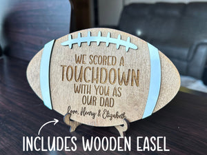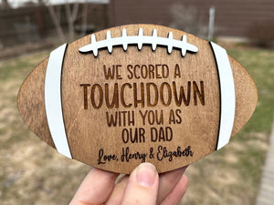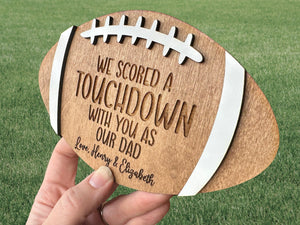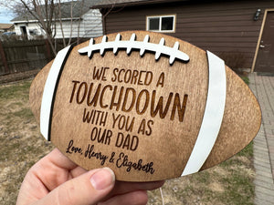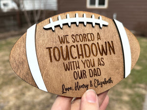 We Scored A Touchdown With You As Our Dad Personalized Engraved Football Wood Sign, Gift For Football Fans