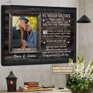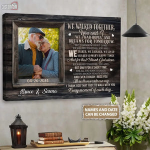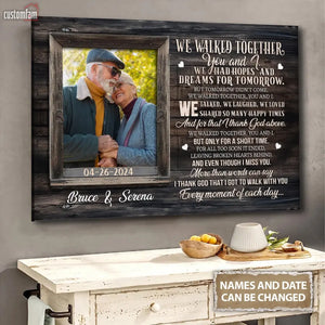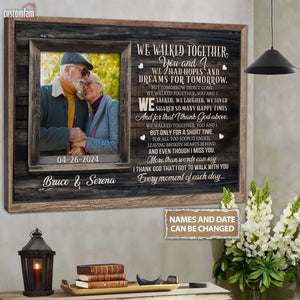 We Walked Together You And I Anniversary Canvas Prints, Custom Name Couple Gifts, Memorial Old Loving Couple Gift