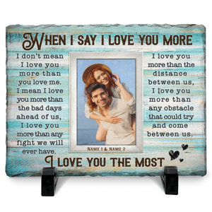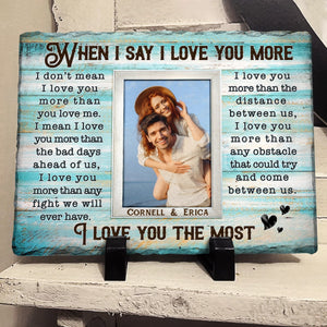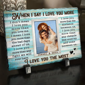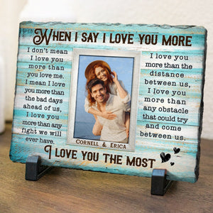 When I Say I Love You More Personalized Rectangular Slate Stone, Anniversary Gift For Couple