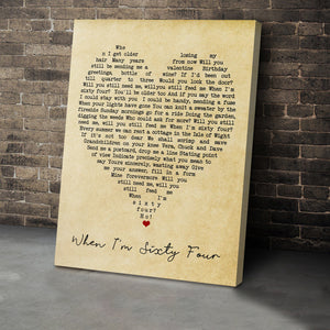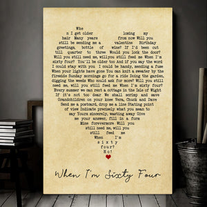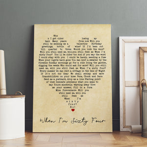 When I'm Sixty Four Vintage Heart Quote Song Lyric Art Print Canvas Print Frames